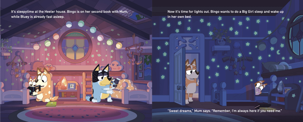 For instance, while Bingo struggles to fall asleep by herself in Bluey: Sleepytime, she gains knowledge about maturing and self-reliance. The story demonstrates how she handles this change, offering parents and kids a compassionate solution to a typical childhood challenge.